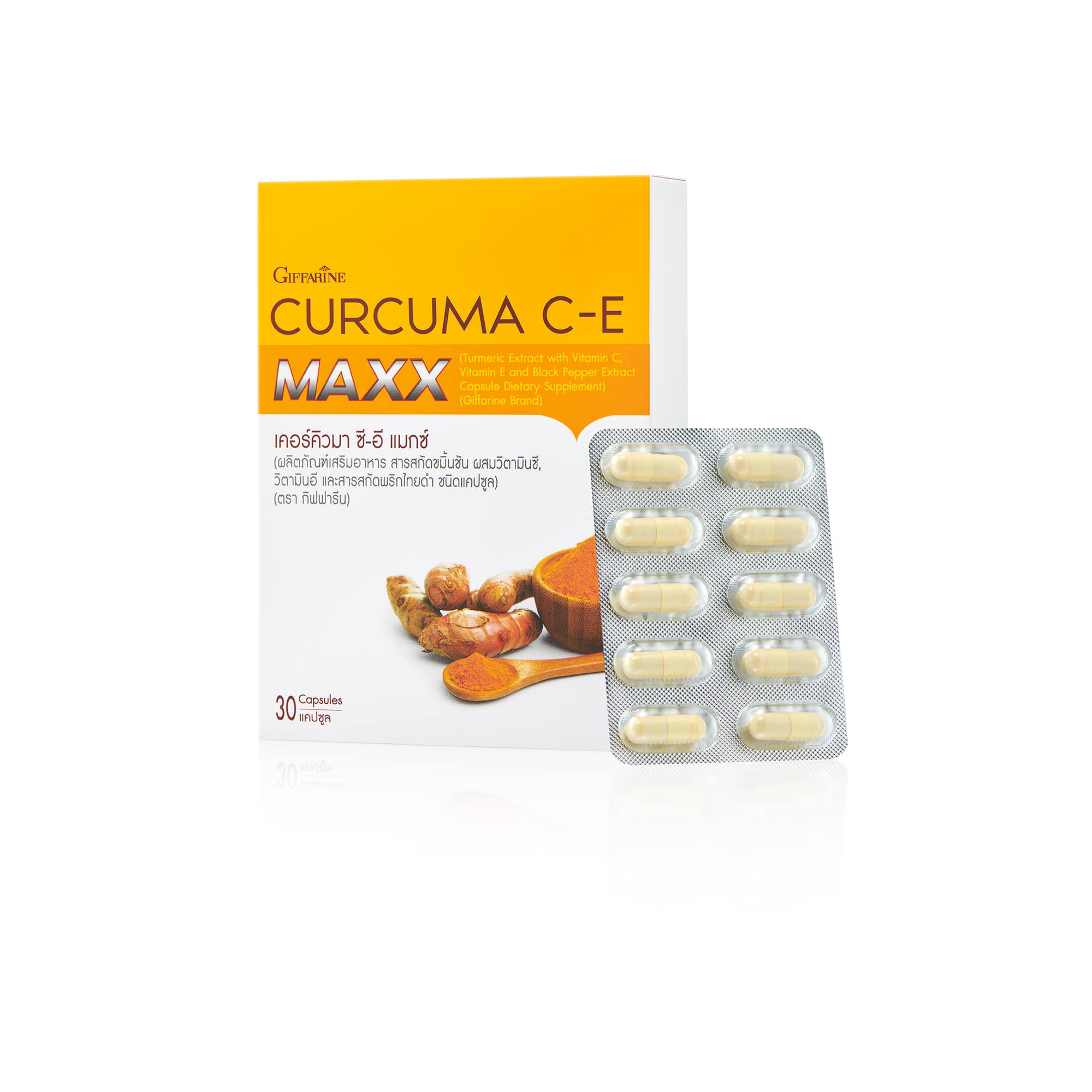 ผลิตภัณฑ์เสริมอาหาร สารสกัดขมิ้นชัน ผสมวิตามินซี วิตามินอี และสารสกัดพริกไทยดำ